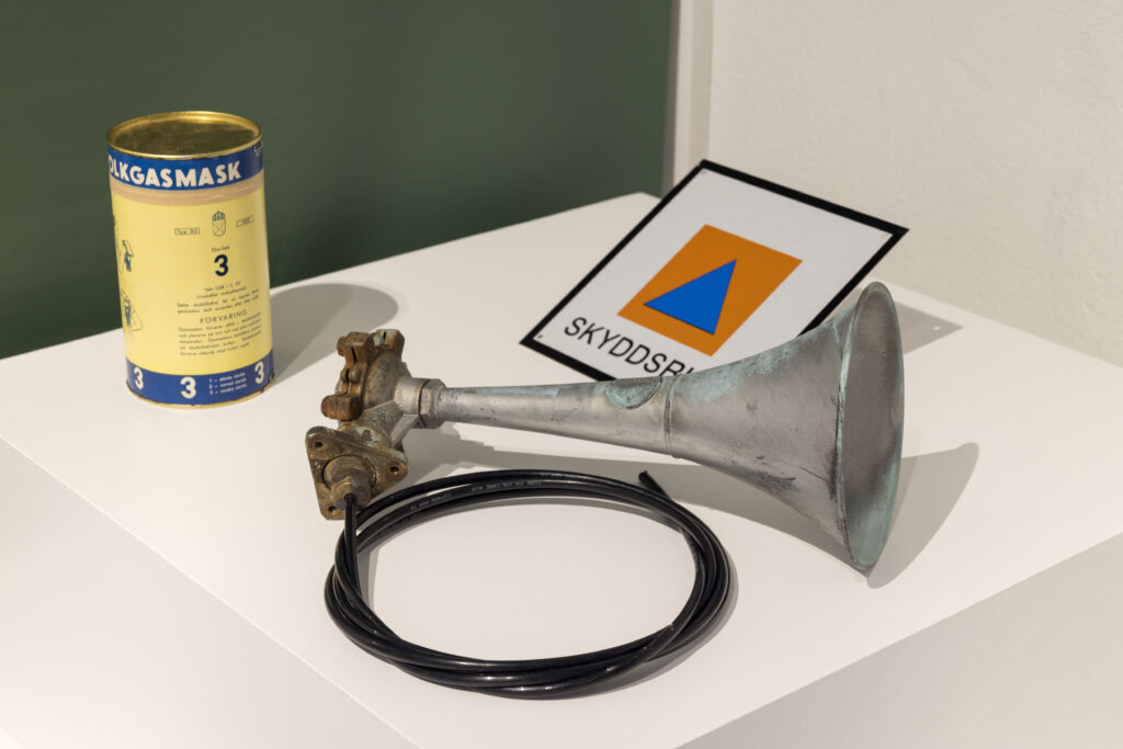 Myndigheters beredskap beror på typen av hot. Här visas en film om Osservatario Vesuviano vars funktion är att övervaka den vulkaniska aktiviteten runt Neapel. En seismolog berättar om det dagliga arbetet. På en stor väggtryckt bild illustreras Tokyos väl utvecklade förberedelser vid eventuella jordbävningar och tsunamis. Runt om i 14-miljonersstaden finns till exempel lekparker som vid behov kan omvandlas till självförsörjande enheter. Är det så att naturkrafter också skapar på bilden av beredskap: seismologer och beredskapssamordnare i allmänhetens tjänst, likt hollywoodfilmernas antihjältar. I utställningen får också de militära och säkerhetspolitiska hoten en självklar plats, bland annat genom miniatyrer av olika bunkersystem och den amerikanska och tidstypiska informationsfilmen Duck and Cover från 1952, som lärde medborgarna hur man skulle agera vid en kärnvapenattack. Eftersom Sverige är förskonat från att ligga på kontinentalplattornas skärningspunkter blir just berättelsen om det militära hotet särskilt tydlig i det svenska sammanhanget. Olika historiska versioner av ”Om kriget kommer” hänger inramade på väggen tillsammans med Anders Beckmans ”Gemensam vakt mot sabotage och spionage” från 1959. Här finns också föremål från svenska skyddsrum. Det som verkligen berör är den kortdokumentären ”Reduit” av John Skoog från 2014. Filmen handlar om lantarbetaren Klas-Göran Persson som under kalla kriget tog saker i egna händer och samlade på sig metall och förstärkte sitt cementgjutna hus för att skydda sig vid en sovjetisk invasion. Ryssen kom aldrig den gången; han dog ensam i sitt ”befästa” hus år 1975. Jag vet inte vilken tillit Klas-Göran hade till myndigheter; men det är ingen kontroversiell åsikt att hävda att det fanns en rädsla för att vår suveränitet skulle säljas ut till ryssen.