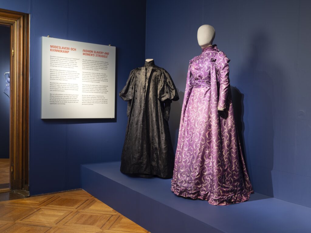 Den enda svackan i utställningen kommer i det sista utställningsrummet, där fem nygjorda plagg (korsetter, korsettklänningar och kjolar) av den norske modedesignern Ove Harder Finseth ställs ut. Här läcker 2000-talets konst- och modefloskler in i utställningstexterna. Den nyanserade historieskrivningen i de övriga rummen ersätts med svepande beskrivningar: ”där traditionella korsetter har varit en symbol för restriktion och kroppslig begränsning, ger Finseths modeller utrymme för andning och naturlig rörelse.” Visst är Finseths dräkter fina, men utrymmet hade kunnat användas till något mer intressant.