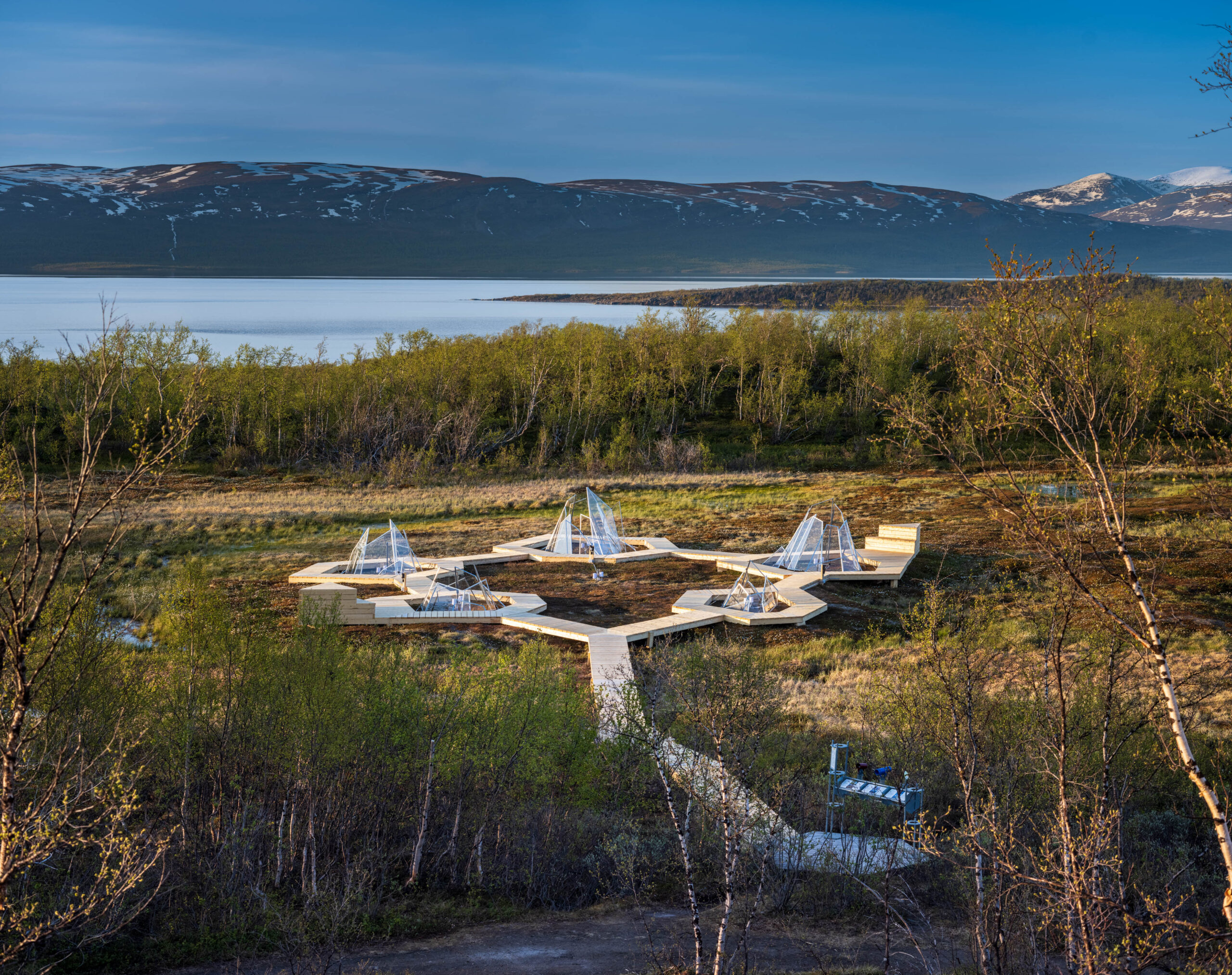 På palsmyren nedanför Svenska Turistföreningens station i Abisko ligger ett konstverk. Besökarna tar sig runt installationen på träspänger och bjuds att titta ner på grönskan i fem öppna växthus i olika storlek. ”Sensing the Arctic” invigdes i augusti 2023 och är både ett konstverk och ett vetenskapligt experiment. Jenny Danielsson har träffat upphovspersonerna: konstnärsduon Bigert & Bergström.
